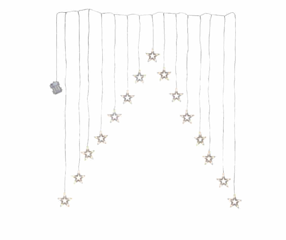 LED kardin täht on kena välimusega LED-kardin tähekujuliste kaunistustega siseruumides kasutamiseks. Töötab patareidega.